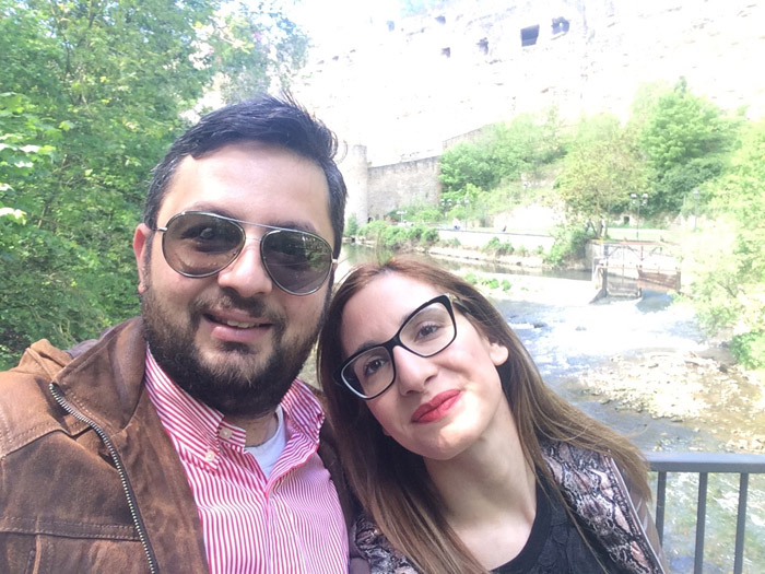 Παρότι οι συνθήκες ήταν τέτοιες που θα έπρεπε να έχουμε γνωριστεί δεκάδες φορές εμείς σπάσαμε τα κοντέρ και καταφέραμε να μην συναντηθούμε για τρία ολόκληρα χρόνια. Βέβαια λόγω του συνδετικού κρίκου (Σίμος ) και του κολλητού του φίλου (Jiles John) , όλα συνηγόρησαν και βρεθήκαμε στο πρώτο πάρτι που διοργανώθηκε στο πλαίσιο μια σειράς prive πάρτι στο ΟΛΥΜΠΙΟΝ στη Θεσσαλονίκη. Το υπόλοιπο της ιστορίας μας είναι γνωστό! Ερωτευτήκαμε, δεθήκαμε, μεταναστεύσαμε και στις 23 Σεπτεμβρίου σας περιμένουμε στον γάμο μας!
